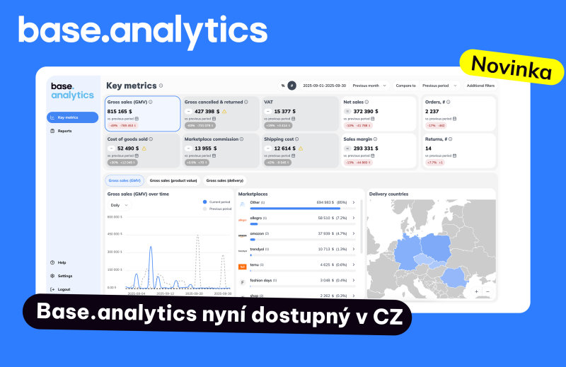 Pokud chcete zvýšit zisk, snížit náklady a předehnat konkurenci, všechno začne právě u vašich dat. Objevte nástroj Base Analytics – kompletně aktualizovaný, rychlejší a nyní plně také planě integrován do vašeho Base.com panelu. Všechny klíčové data vašeho online prodeje na jedno kliknutí. 🚀