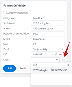 Pokud chcete odstranit propojení mezi objednávkou a uloženým klientem, klikněte na tlačítko + vedle názvu klienta. Propojení můžete kdykoli znovu vytvořit.