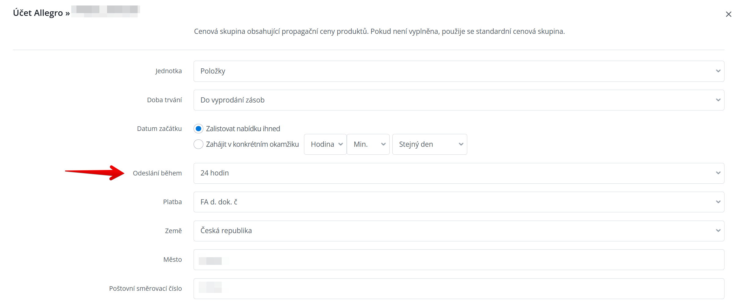 Dobu odeslání můžete nastavit pro všechny Vaše Allegro nabídky stejnou a nebo můžete tuto dobu nastavit různou pro různé nabídky.