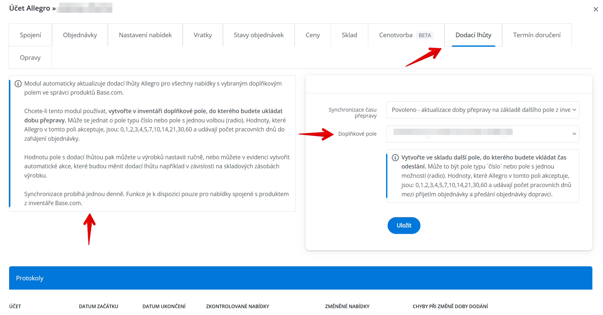 Doporučujeme také přečíst informace o nastavení Dodací lhůty v nastavení integrace Allegro.