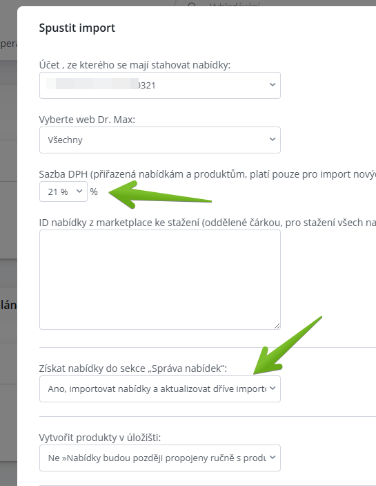 Ve většině případů, stačí v importu nastavit DPH na 21% a typ importu na aktualizační, zbytek není třeba měnit: