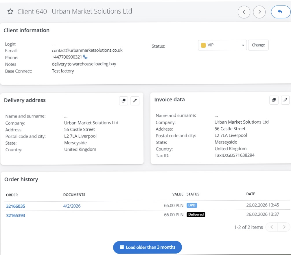 Introducing the Customers module brings structure to B2B sales in the system and allows you to treat a company as a long-term business partner, rather than just a collection of individual orders.