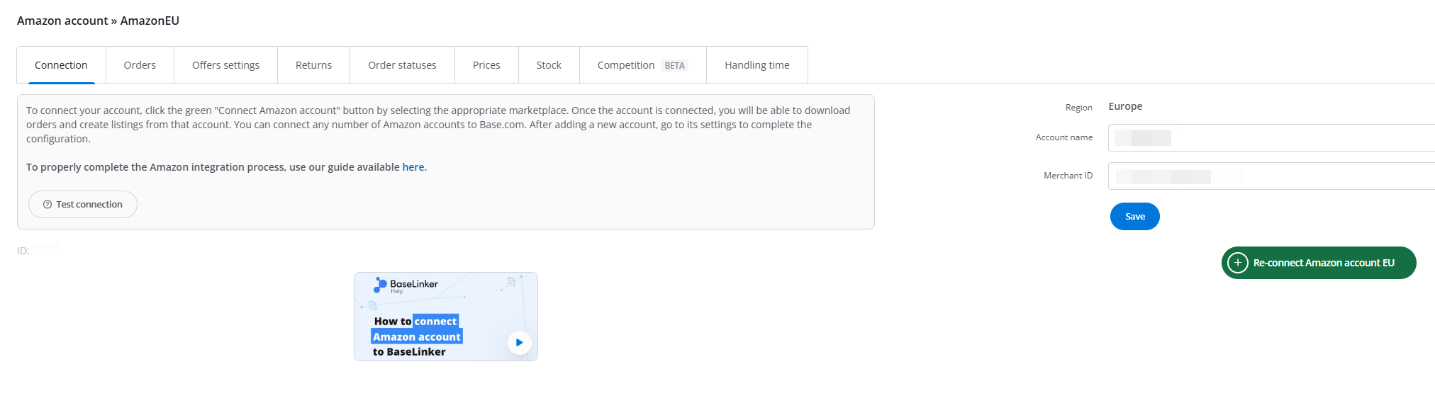 - Configure the Order Manager and activate Amazon order downloading to Base.com in Integrations → Amazon → Orders.