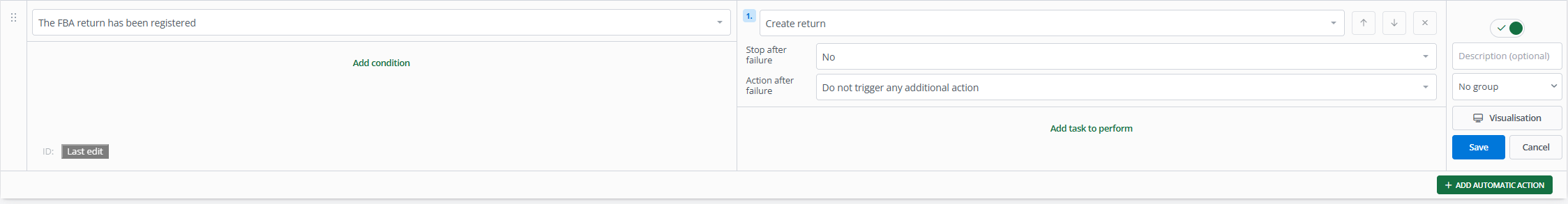 - Downloading returns for FBA orders – When the option to download returns for such orders is enabled, only the return information will be downloaded to the order card in our panel. Based on that information, you can set an automatic action to create the return.