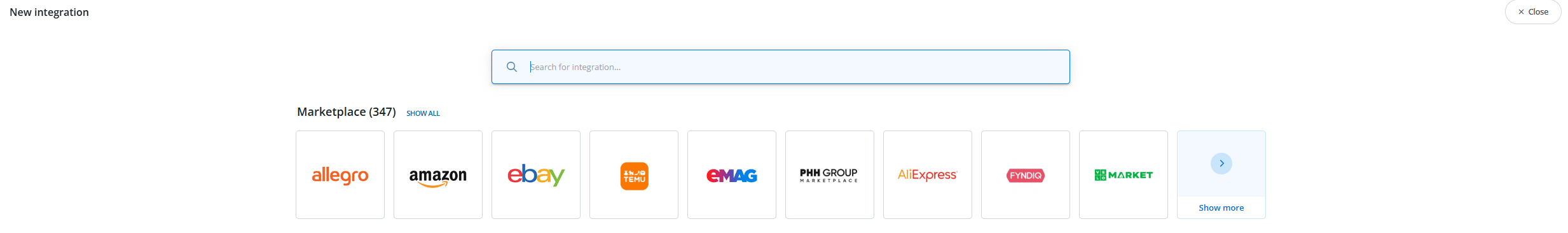 First, you will need to connect the selected marketplace account where you want to list new offers. You can do this in the “Integrations → add integration (+)” tab.