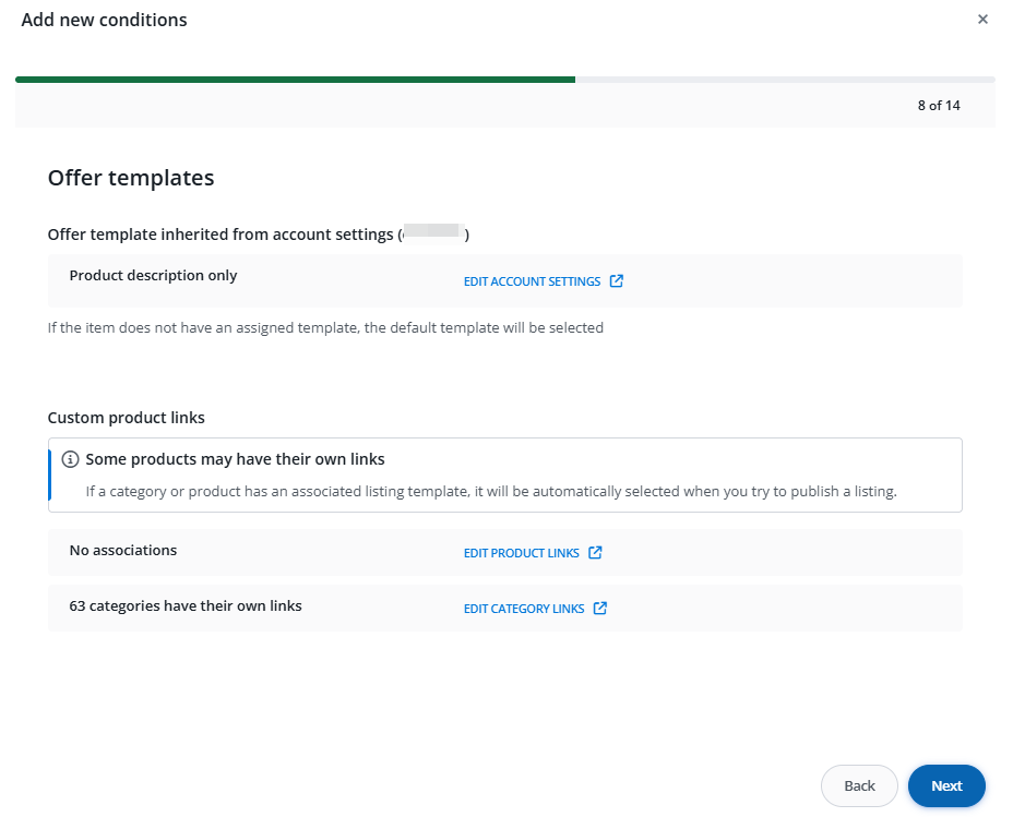 8. This section will display information about the default offer templates assigned to your account, as well as to categories and products. You can configure these settings according to your preferences.