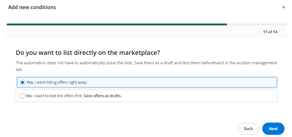 10. In this field, we can choose whether our listing machine should send offers to the marketplace or only create drafts.