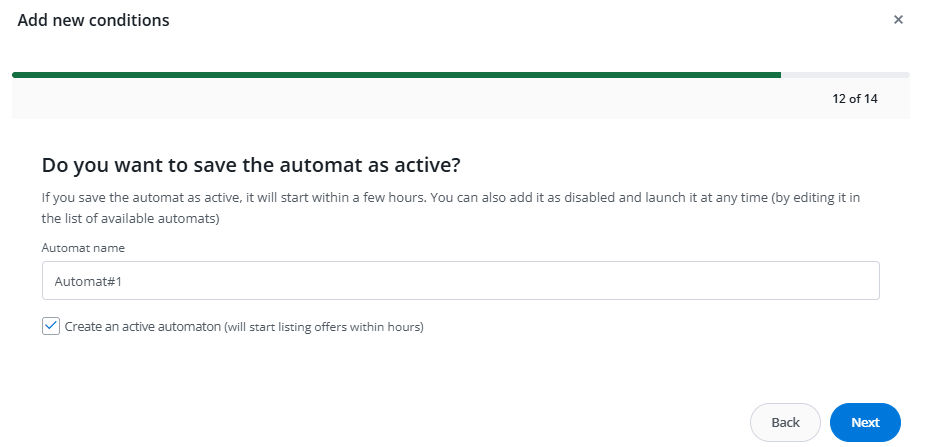 11. In this field, we can set the name of the automatic listing we have created and specify whether it should be active.