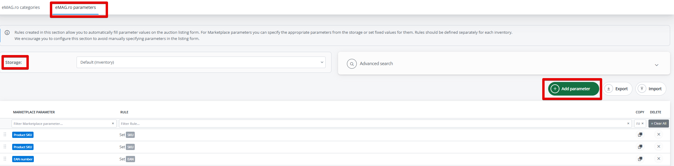 You can configure parameter mapping in the Marketplace→ Categories and parameters → Parameters → Add parameter section.