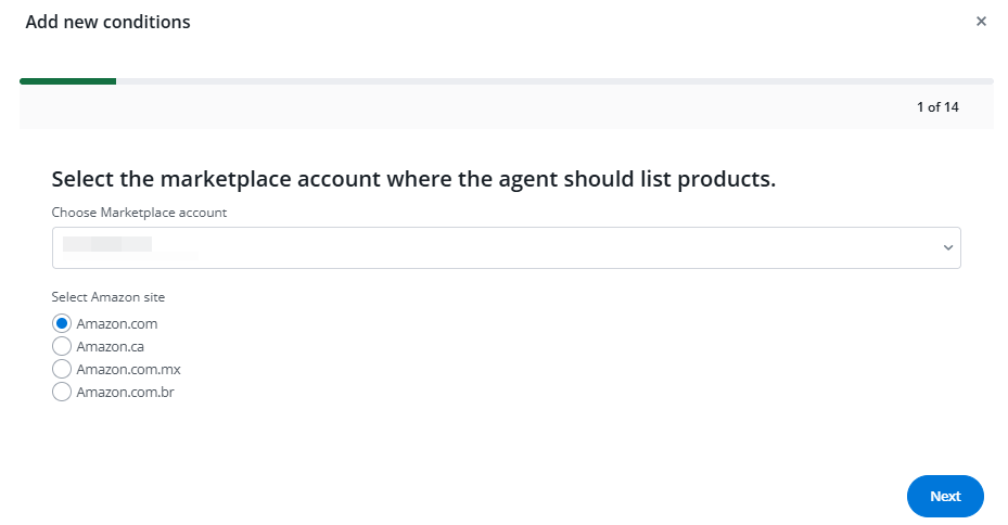- Select the marketplace account connected to the system where new products are to be automatically listed.