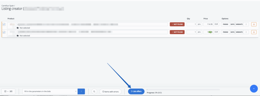 - Go to Carrefour → Listing creator.