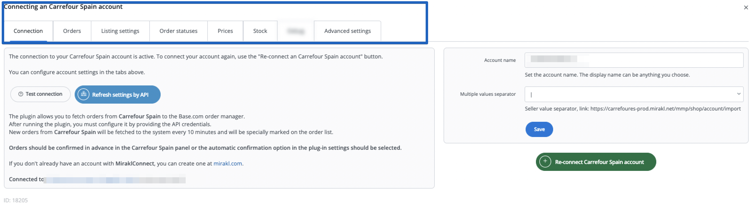 Base system offers integration with the Carrefour platform, allowing both order retrieval and bulk listing. The module also includes basic offer management options.