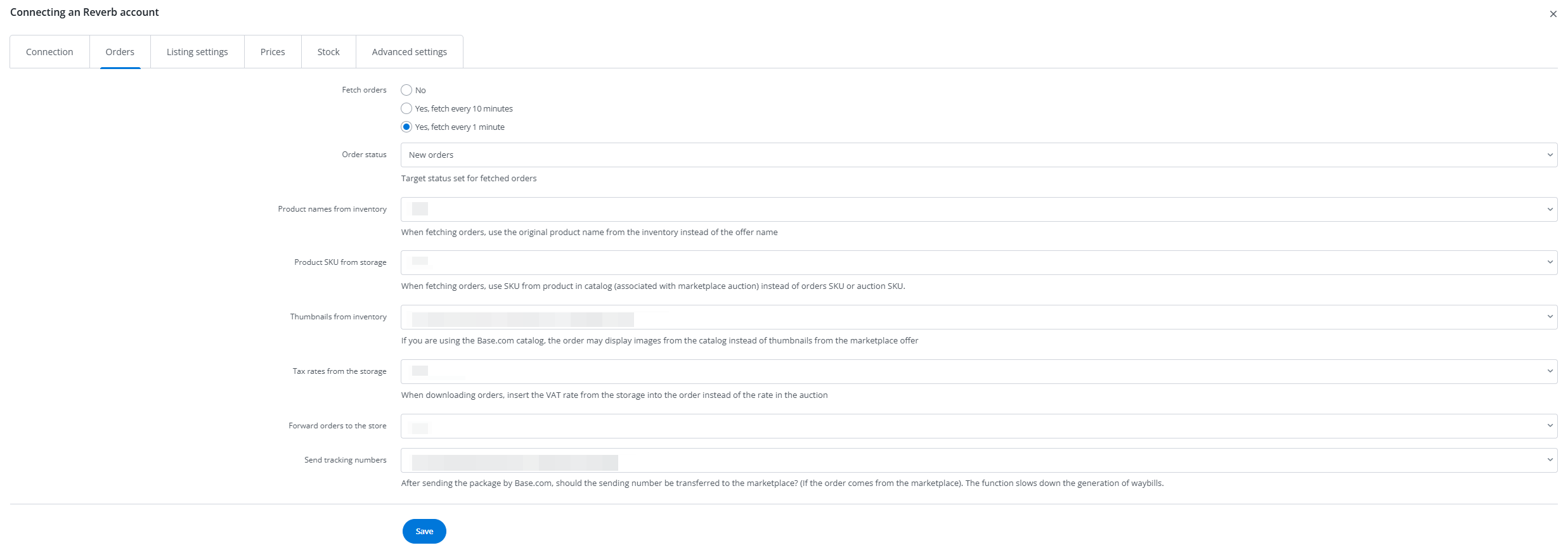 - Configure the Order Manager and activate Reverb order downloading to Base.com in Integrations → Reverb → Orders.