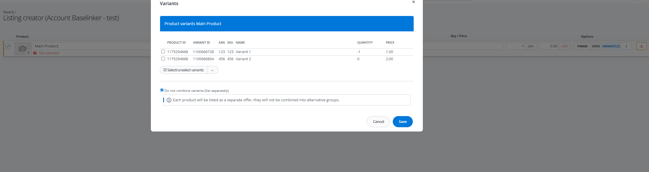 - bulk listing on Reverb based on products from a warehouse connected to the Base.com system (it can be an online store warehouse, wholesaler warehouse, Base.com warehouse or ERP system).