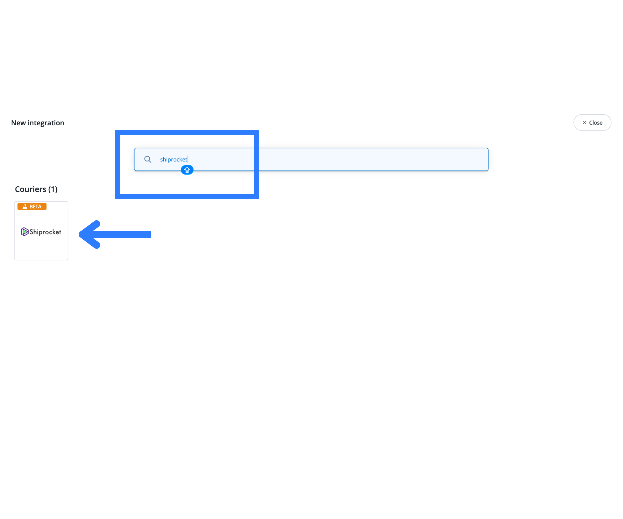 - Search for Shiprocket in the available integrations list.