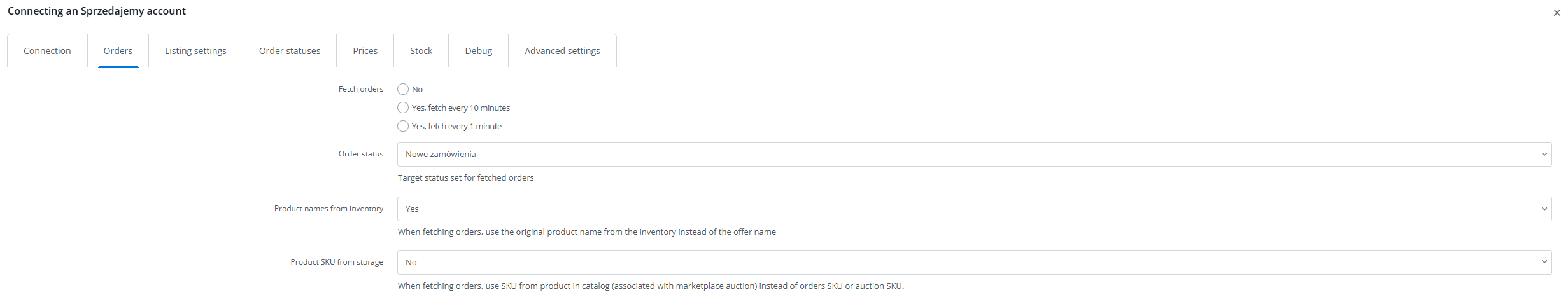 - Configure the Order Manager and activate Sprzedajemy order downloading to Base.com in Integrations → Sprzedajemy → Orders.