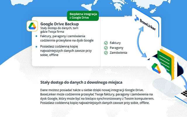Aby ułatwić naszym użytkownikom tworzenie własnych backupów, opracowaliśmy nową integrację – Google Drive Backup. Dzięki niej każdy użytkownik BaseLinkera może w jeszcze łatwiejszy sposób niż do tej pory tworzyć własne kopie bezpieczeństwa.