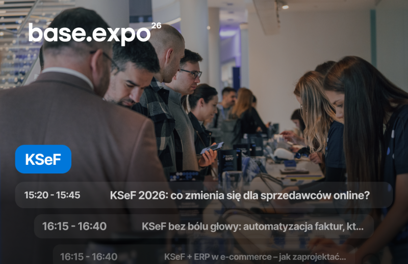 Zobaczysz na żywo, jak wygląda KSeF od strony sprzedawcy, od strony Base i od strony architekta procesu – w jeden dzień, na jednym wydarzeniu. Plus wszystko, co dzieje się dookoła: WMS, AI w listingu, ekspansja zagraniczna, panel z największymi platformami. Bilety i pełna agenda na stronie Base EXPO.