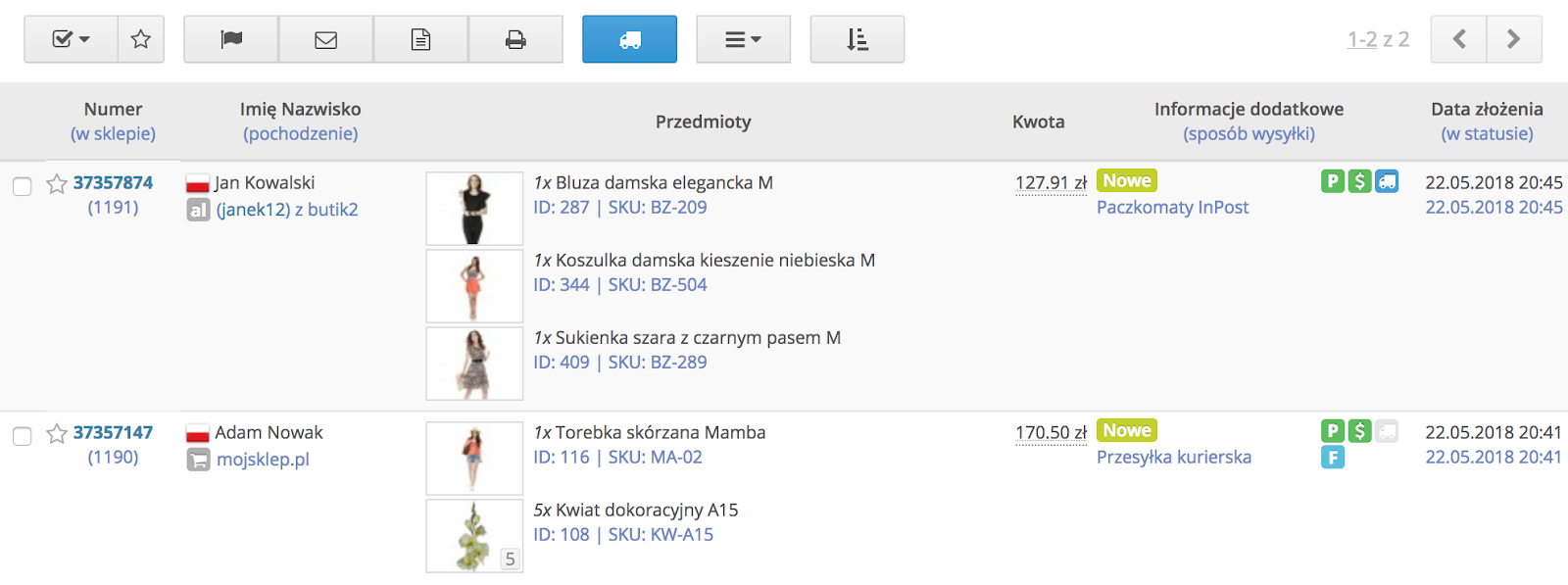 • Wyszukiwanie zamówień po SKU, EAN i ID poszczególnych produktów