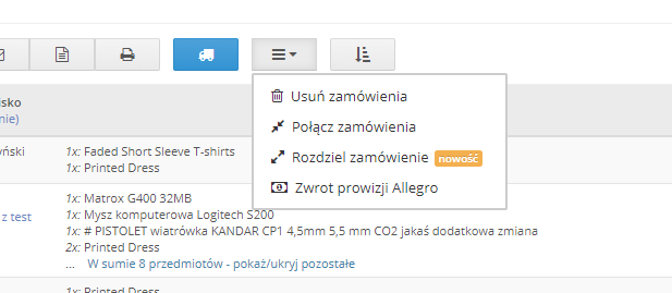 Przycisk “Rozdziel zamówienie” można znaleźć w dwóch miejscach: