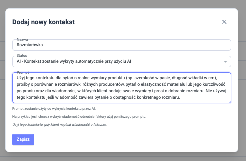 Do tej pory w Responso dostępna była baza domyślnych kontekstów (takich jak: oferta, wysyłka, reklamacja, zwrot). To solidny fundament, który pokrywa większość standardowych scenariuszy. Jednak każdy biznes ma swoją specyfikę, niszowe problemy i unikalny język komunikacji z klientem, prawda?