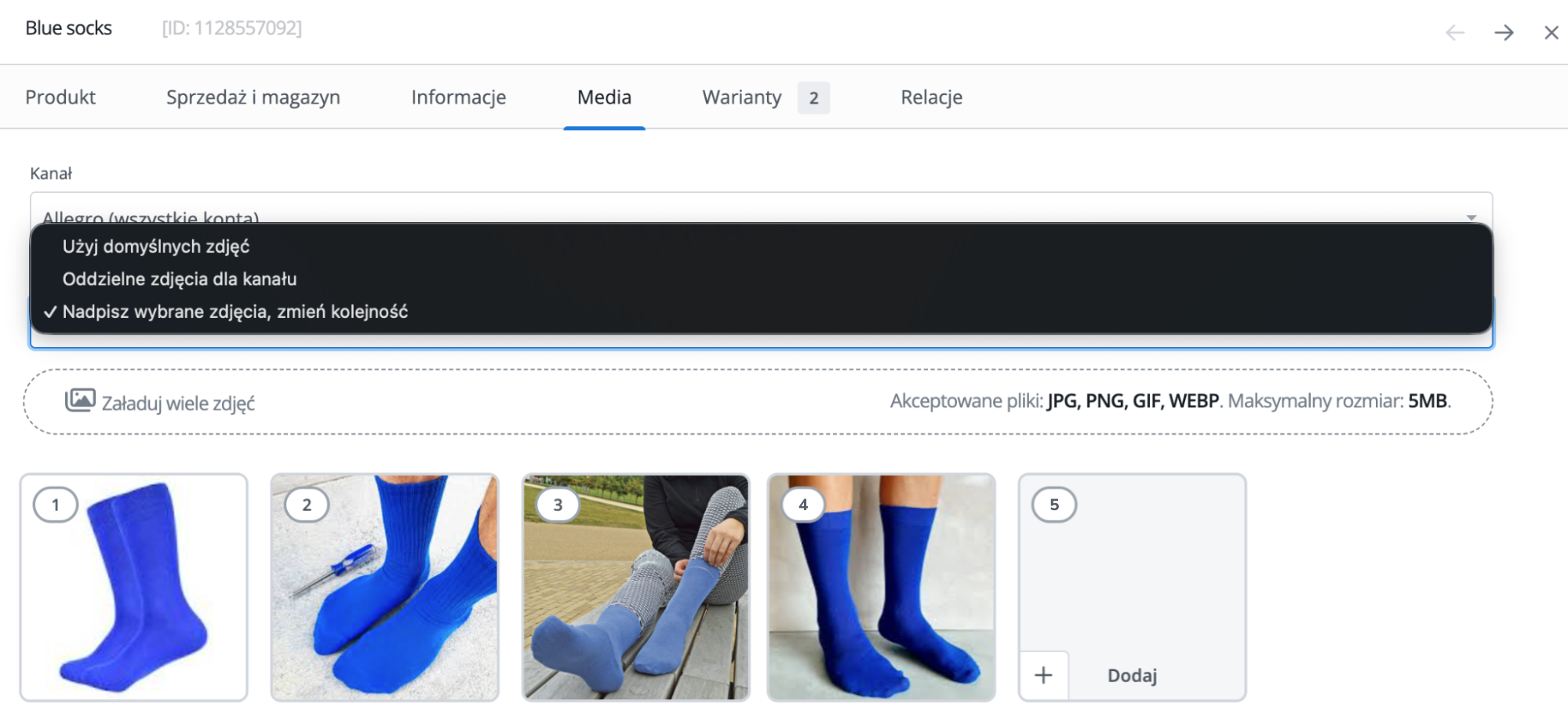- zarządzasz kolejnością zdjęć osobno dla każdego kanału – co ma znaczenie np. dla miniatur, algorytmów i przede wszystkim doświadczenia zakupowego klienta.