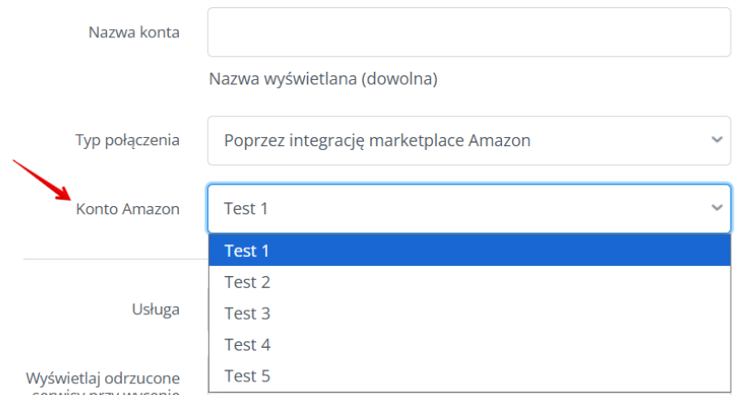- Usługa – wybierz oddział Amazon, w którym posiadasz konto;