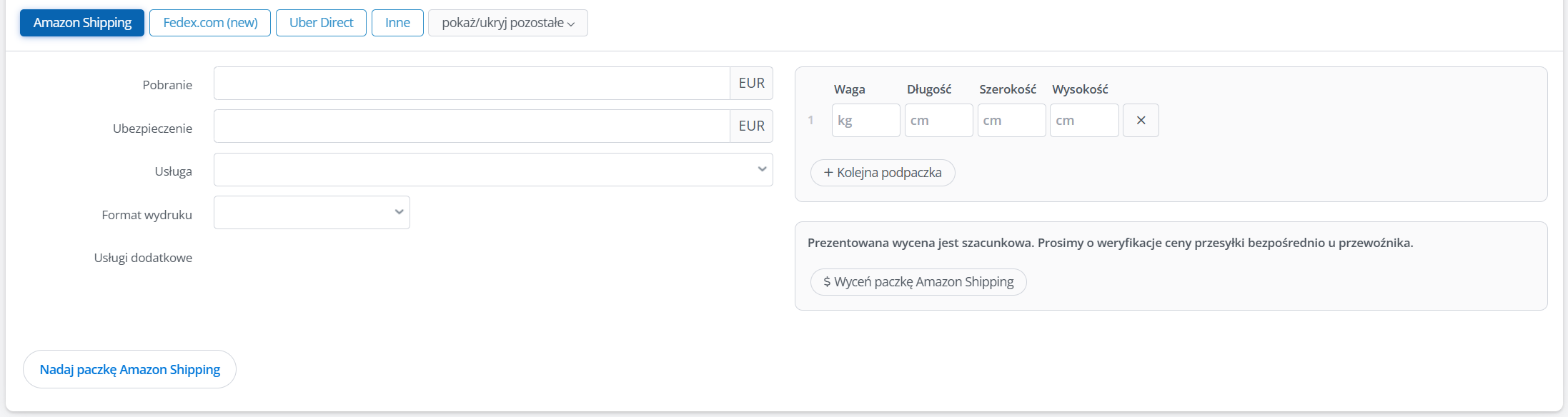 Integracja Amazon Shipping