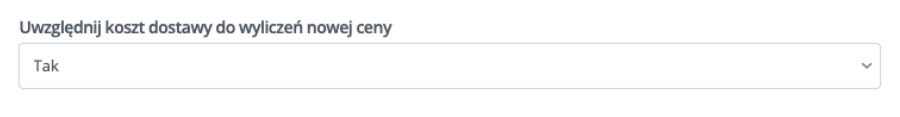 Dodatkowo możesz uwzględnić koszt dostawy przy wyliczaniu nowej ceny. Zaznacz tę opcję, jeśli chcesz, aby system brał pod uwagę łączny koszt zakupu (czyli cena produktu + koszt wysyłki) w porównaniu do konkurencji.