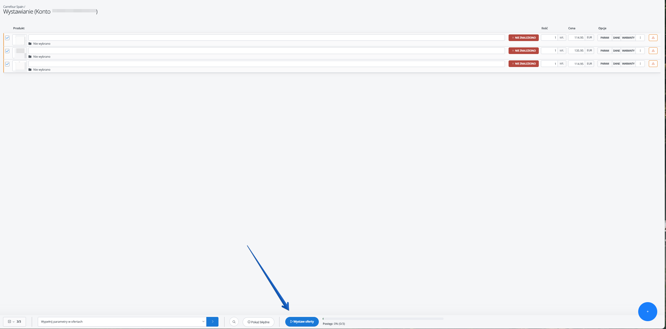 - Przejdź do sekcji Carrefour → Wystawianie.