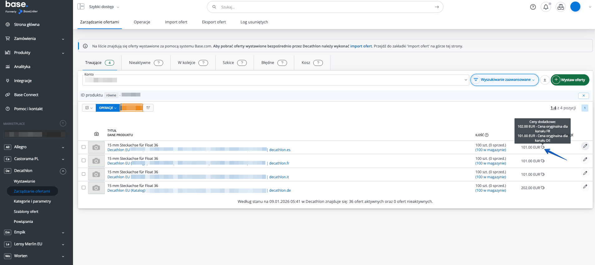 - Przypisane ceny mogą Państwo następnie sprawdzać w zarządzaniu ofertami Decathlon w panelu Base.