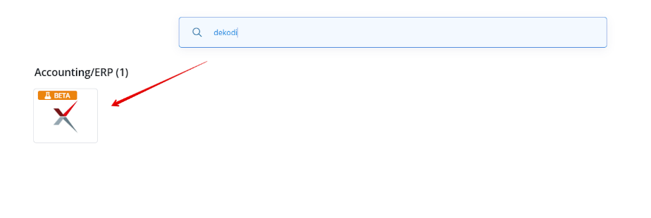 - Wyszukaj Dekodi w polu wyszukiwania lub na liście dostępnych integracji.