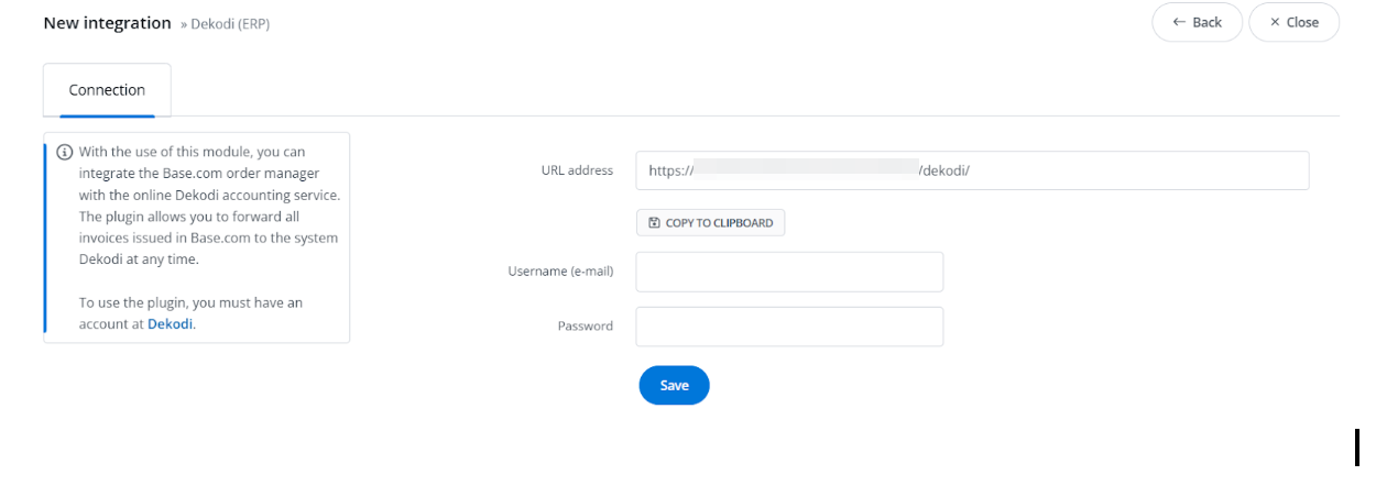 - URL address: Endpoint, który należy podać w ustawieniach systemu Dekodi w celu nawiązania połączenia z Base.com.