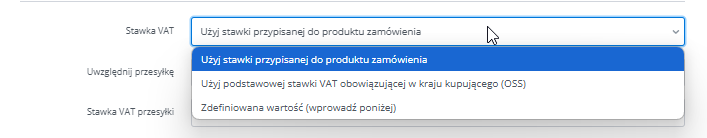 - stawka VAT może być zgodna z podstawową stawką VAT kraju dostawy (dla zamówień w ramach procedury VAT OSS).