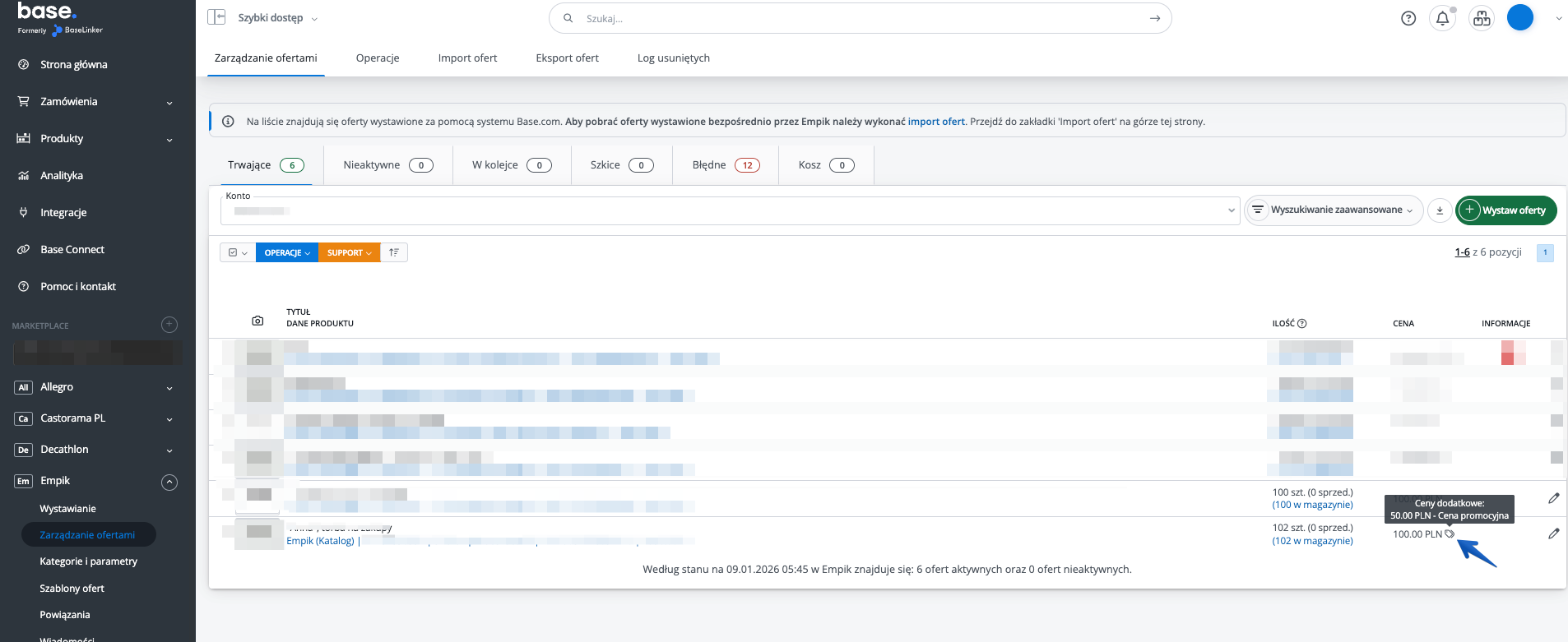 - wystawianie ofert Empik na podstawie produktów z podłączonego do systemu Base.com magazynu (może to być magazyn sklepu, hurtownia, magazyn Base.com lub system ERP).