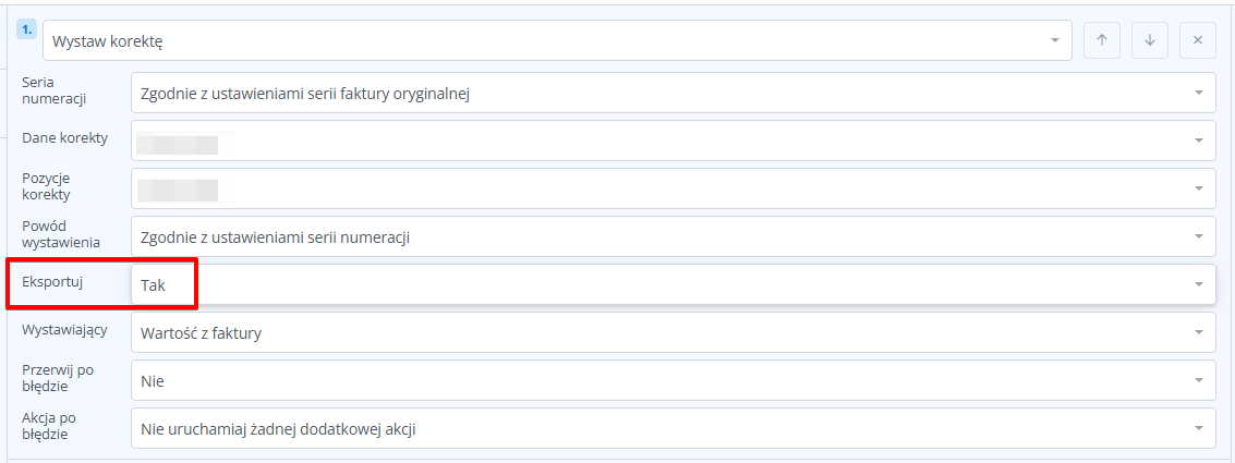 - Faktury korygujące można automatycznie przekazać do Fakturowni za pomocą akcji automatycznej i ustawieniu poniższej opcji:
