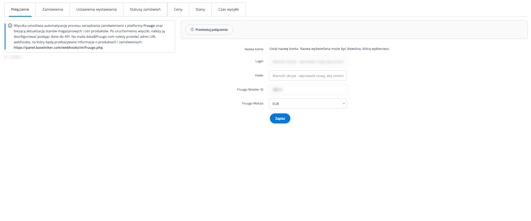 - Skonfiguruj moduł synchronizacji stanów w sekcji Integracje → Fruugo → Stany.