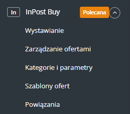 - Wybierz ulubione kategorie w dziale InPost Buy → Kategorie i parametry → Kategorie InPost Buy. Podczas wystawiania oferty wyświetlą się one jako rozwijana lista.
