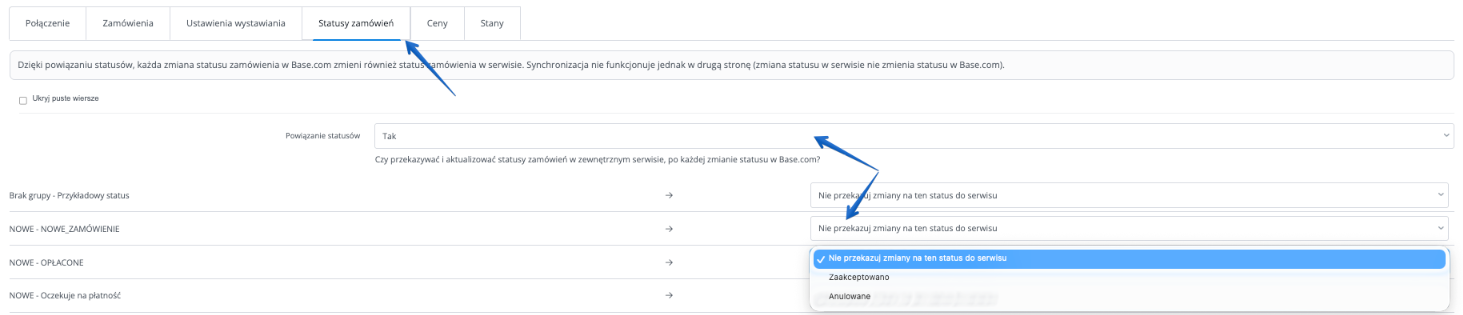 - Statusy zamówień — możliwość ustawienia mapowania statusów w panelu Base i przesyłania aktualizacji statusu zamówienia do InPost Buy. Dostępne statusy do zmapowania to Zaakceptowano oraz Anulowano.