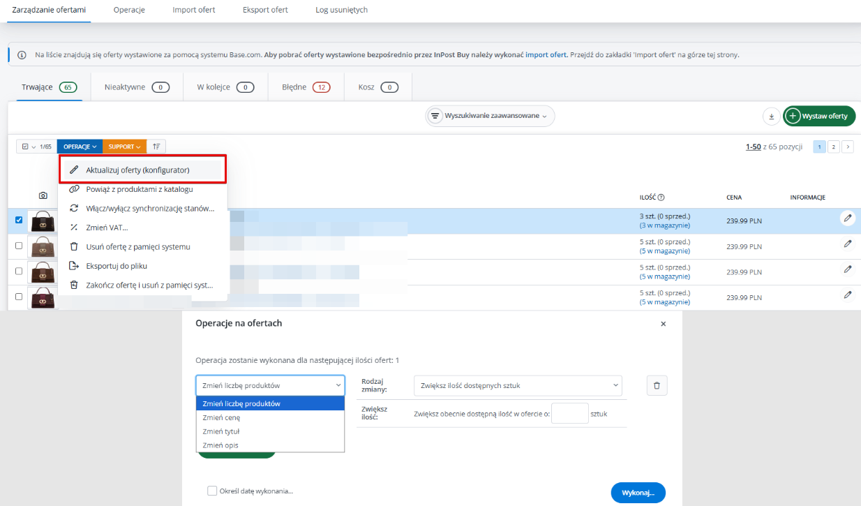 Aby masowo wystawiać oferty z Base.com na InPost Buy, skonfiguruj wtyczkę.
