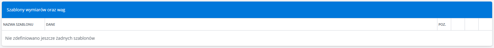 W tym miejscu, za pomocą przycisku +Dodaj nowy szablon zdefiniujesz wymiary oraz wagę paczki. Tak utworzony szablon będzie dostępny do wybrania podczas nadawania przesyłki.