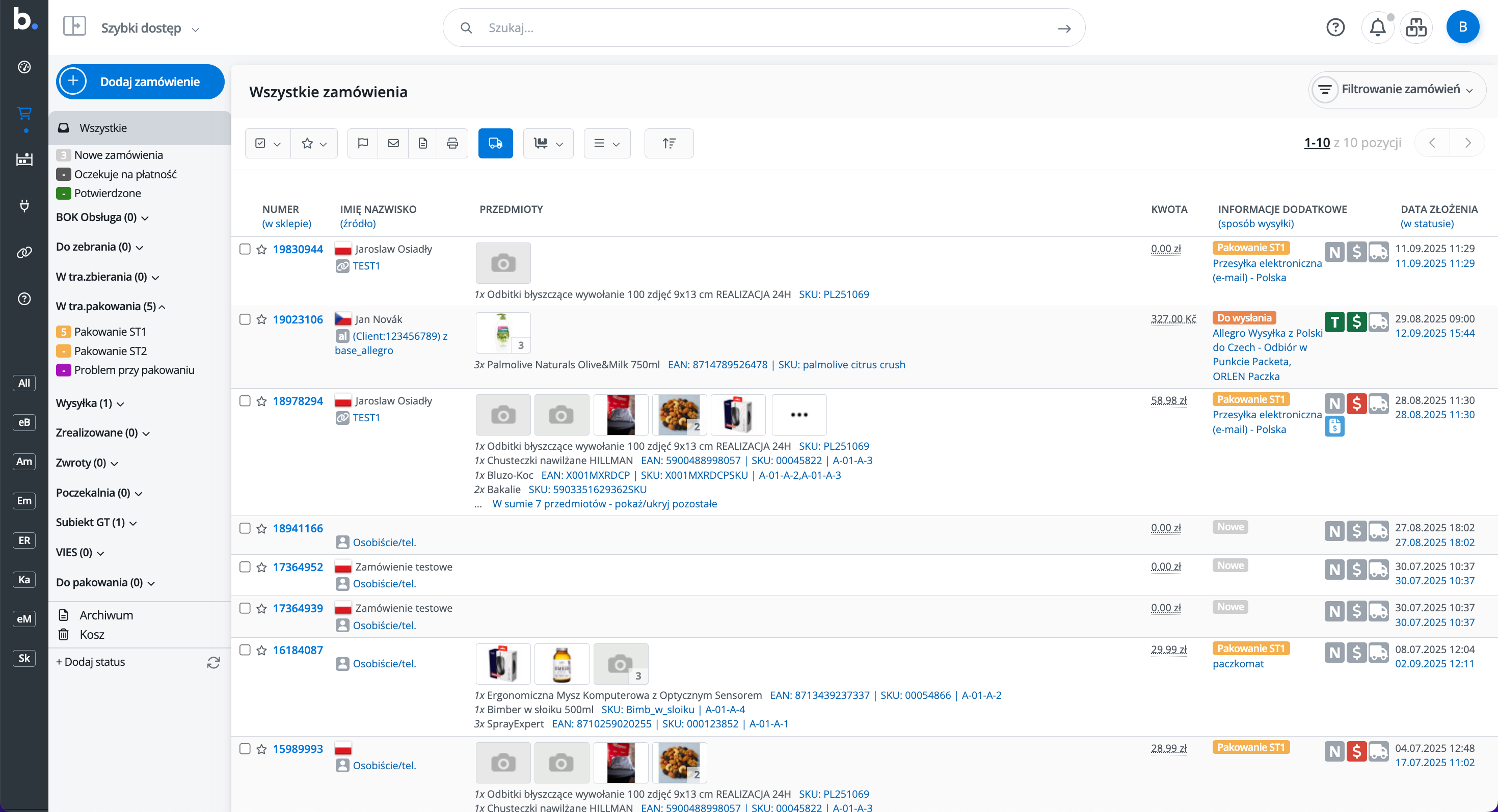 - uruchomienie asystenta zbierania oraz pakowania dla wybranych zamówień
