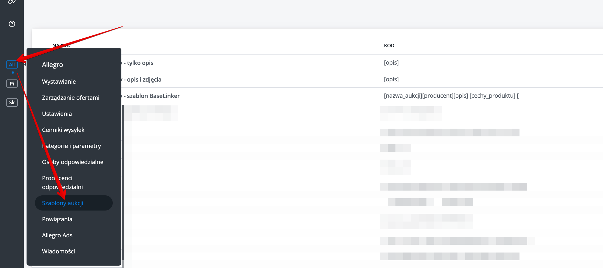 Gotowe szablony znajdziesz w dziale Allegro → Szablony aukcji.