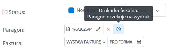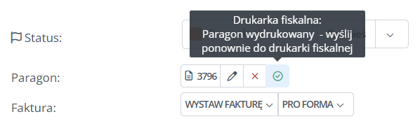 Po aktywowaniu wtyczki karcie zamówienia widoczna jest nowa ikona obok wystawionego paragonu. Ikona zmienia się w zależności od statusu wydruku paragonu na drukarce fiskalnej.