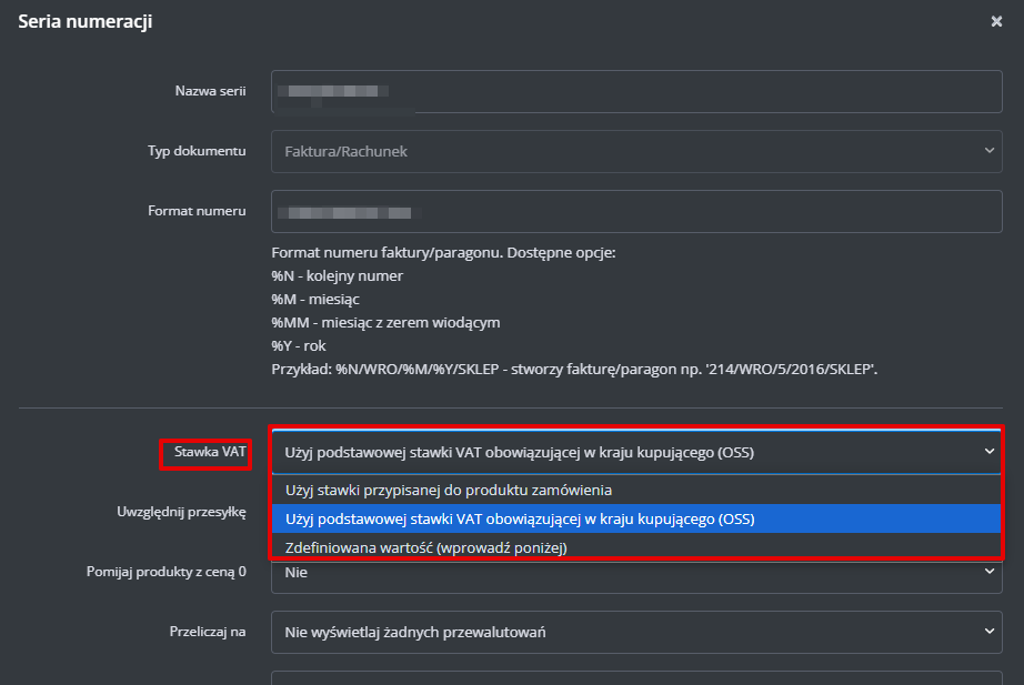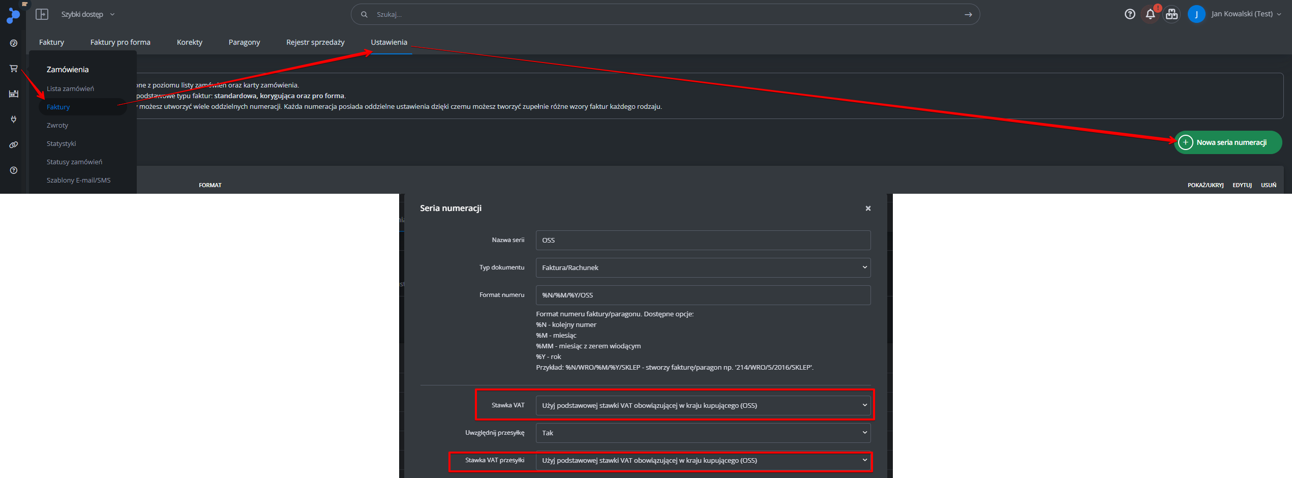 Aby poprawnie wystawiać faktury OSS w naszym systemie zawsze sugerujemy utworzenie osobnej serii numeracji faktur: