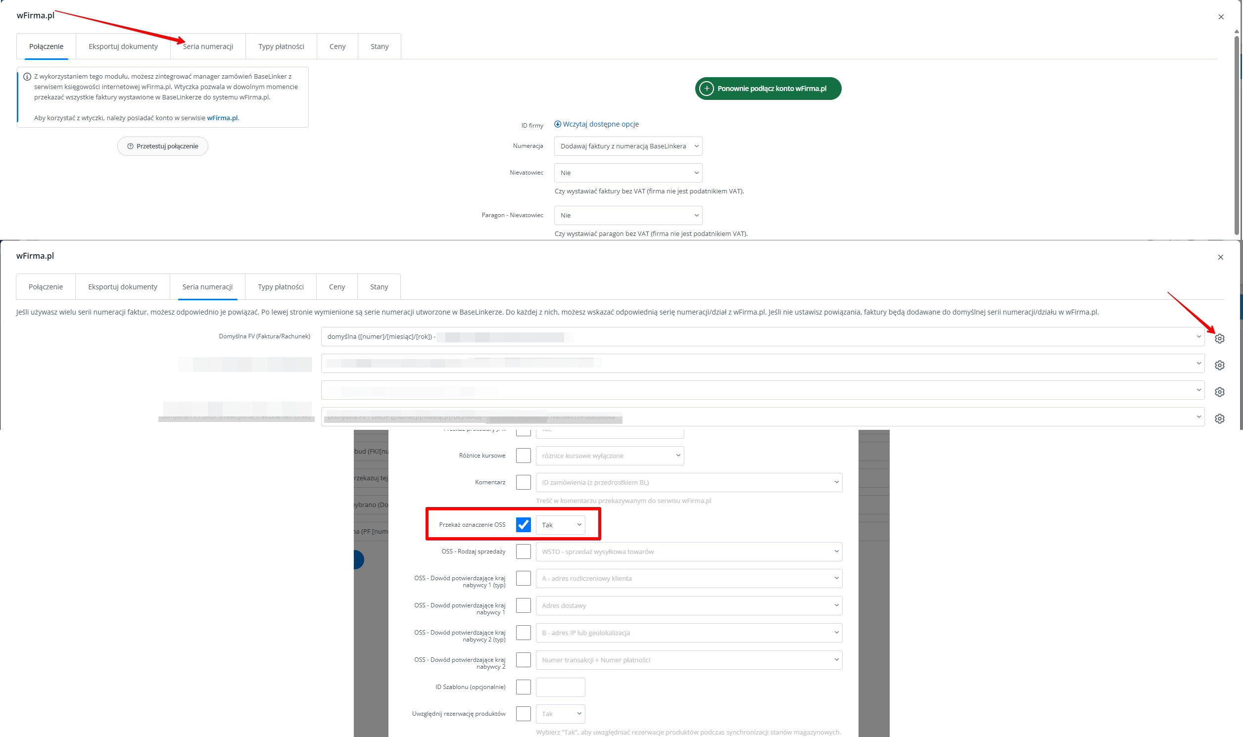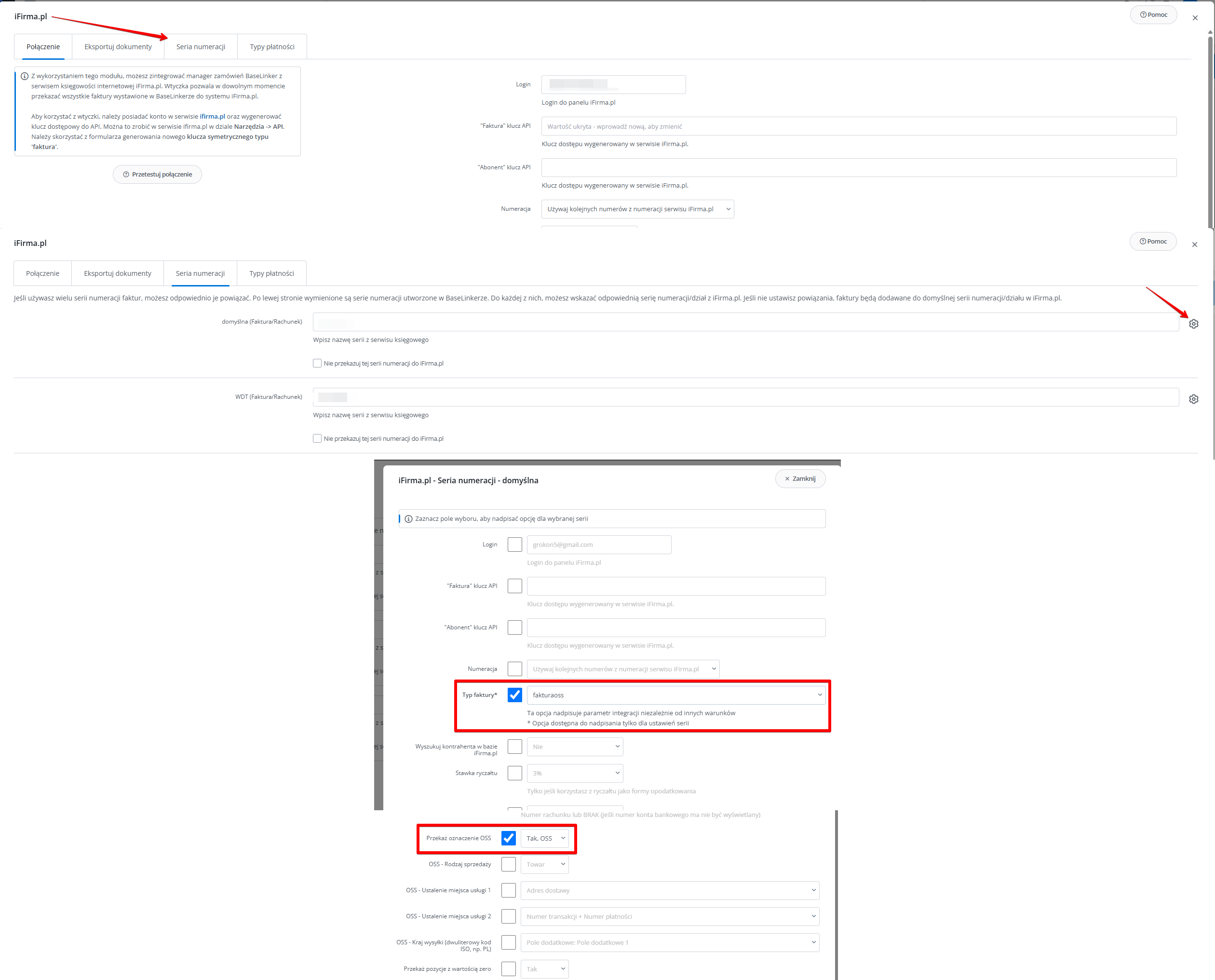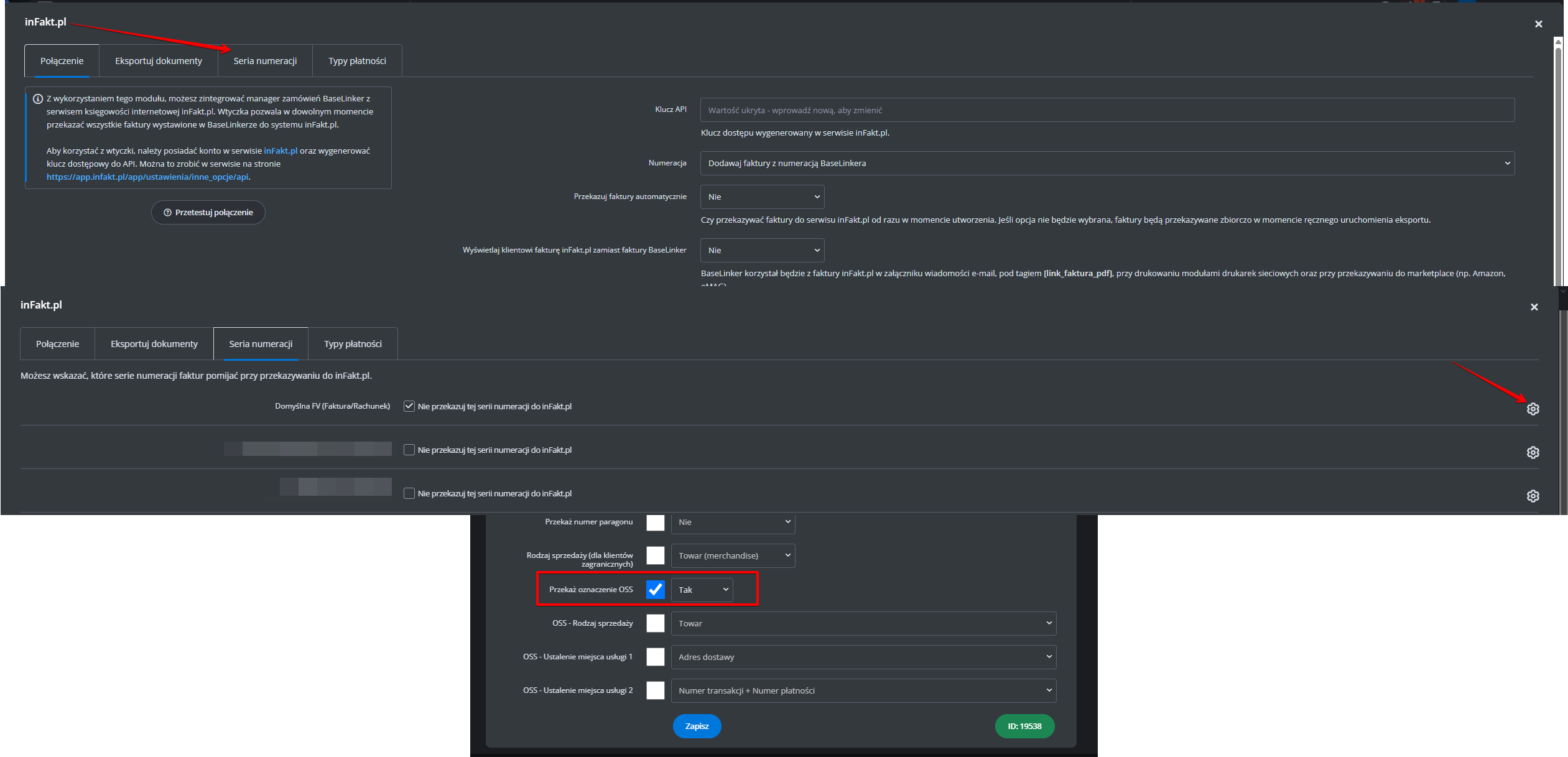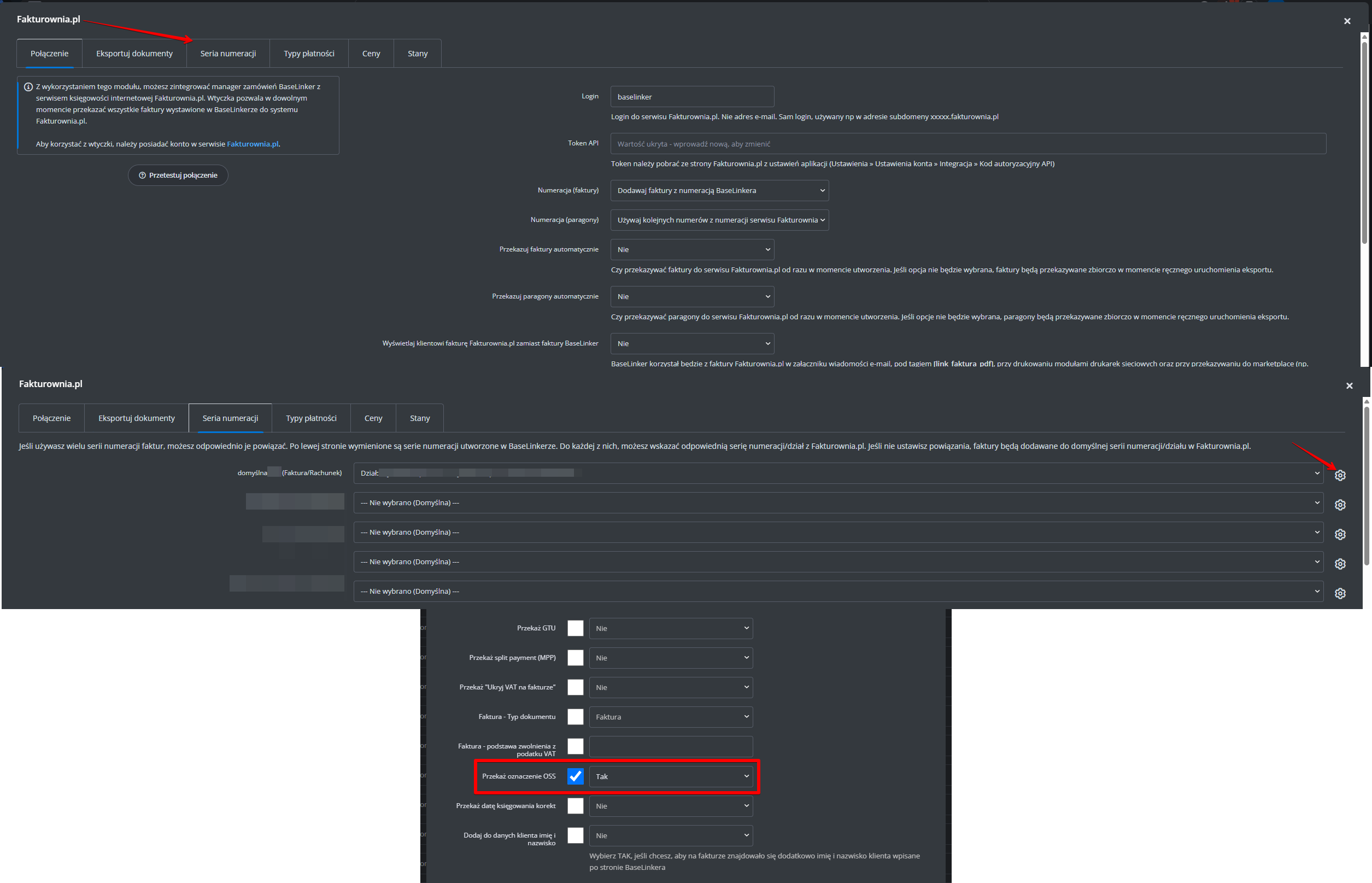 W każdej integracji księgowej można zmieniać ustawienia dla danej serii numeracji faktur. W tym przypadku, aby faktury OSS poprawnie były przekazywane do integracji księgowej, należy przekazywać oznaczenie OSS.