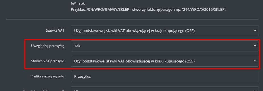 W danych ustawieniach należy wybrać, aby stawki VAT były dopasowywanie automatycznie na podstawie kraju dostawy.