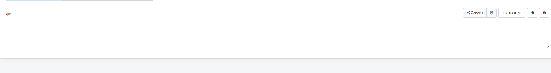 Pole po prawej stronie zawiera opis produktu, który zaciągany jest z magazynu. Zwróć uwagę na to, że nie jest to szablon HTML. W tym miejscu możesz ręcznie edytować taki opis. Opis może mieć maksymalnie 60 tysięcy znaków.