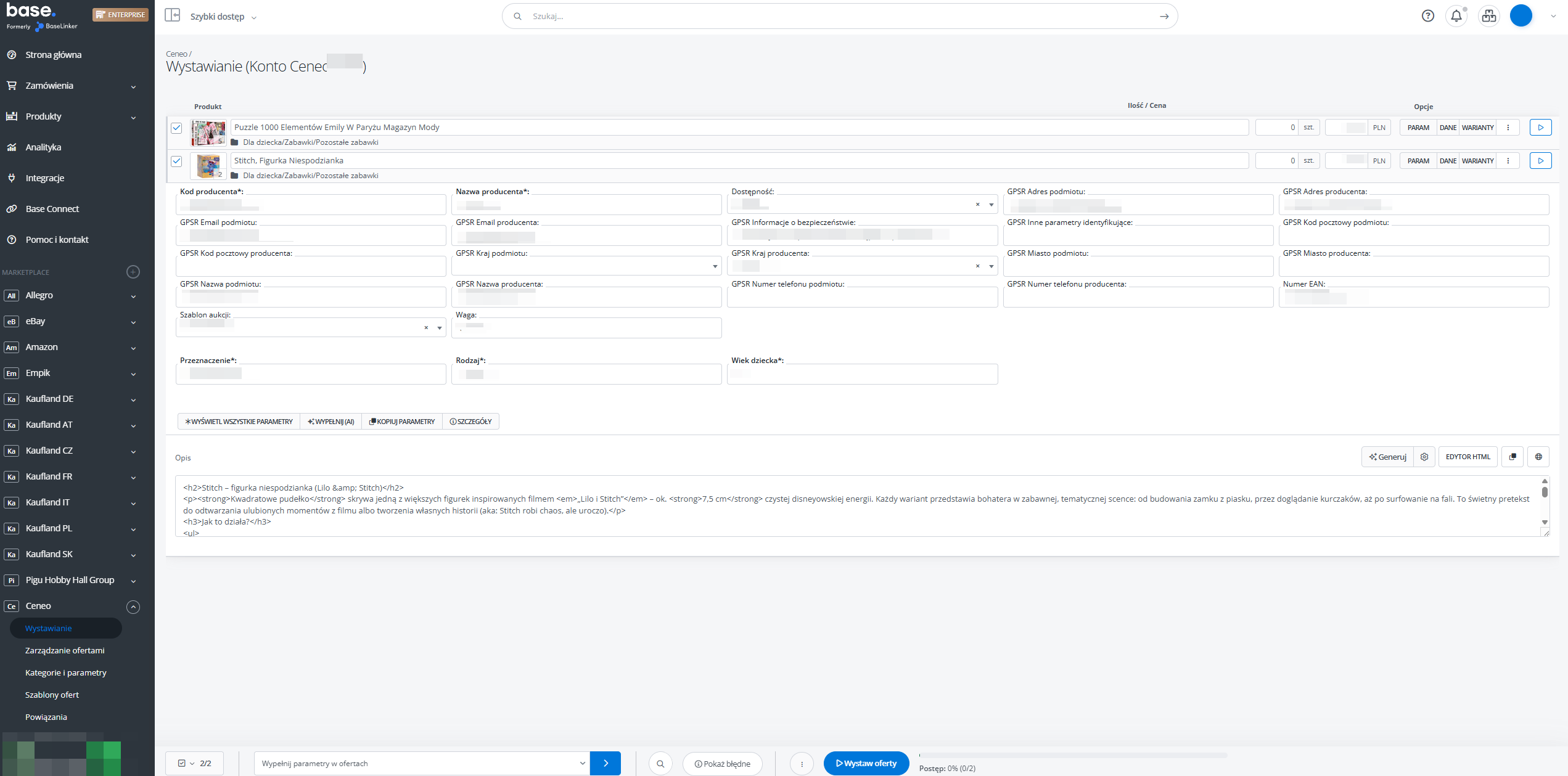 Przesyłanie ofert na platformę Ceneo