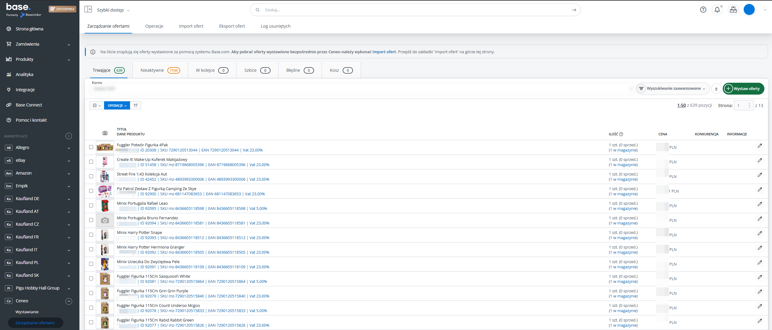Import ofert umożliwia pobranie ofert wystawionych bezpośrednio na platformie Ceneo, jeszcze przed uruchomieniem konta w systemie Base.com.